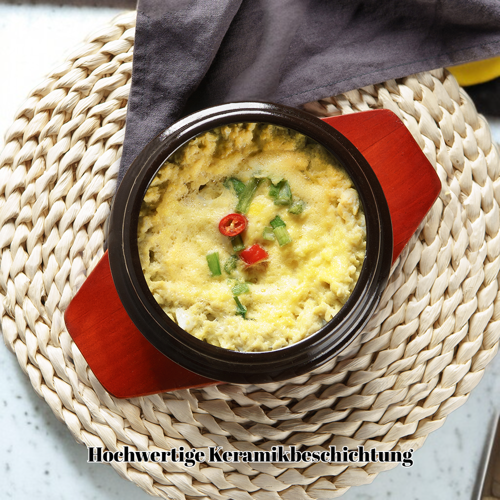 ● Der Trockenbrat-Keramiktopf ermöglicht fettarmes und gesundes Braten, ohne dass Speisen am Boden haften bleiben – ideal für eine bewusste Ernährung.