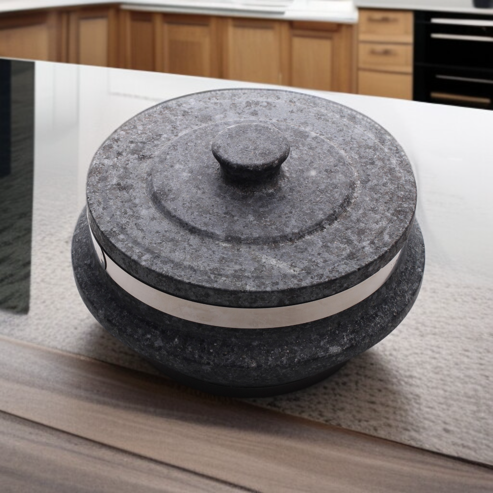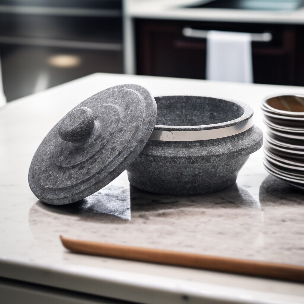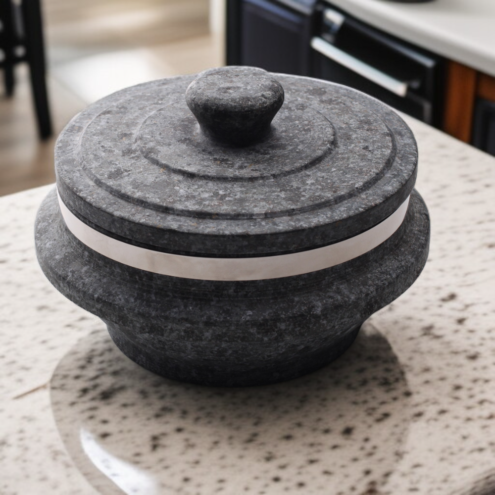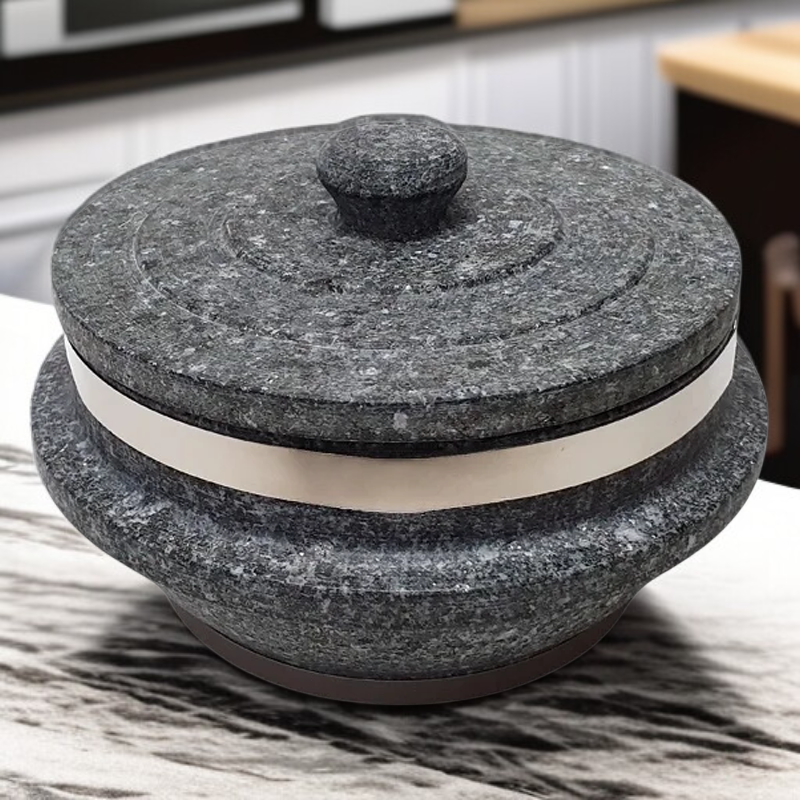 ● Hochwertiger Steintopf mit passgenauem Deckel für optimale Wärmespeicherung und gleichmäßiges Garen Ihrer Speisen – ideal für traditionelle und moderne Küchen.